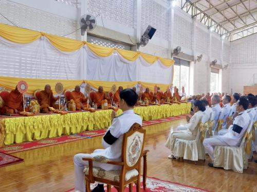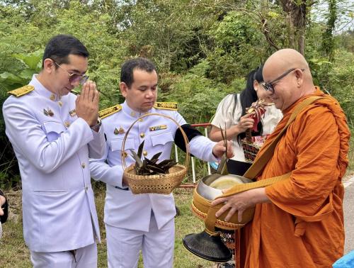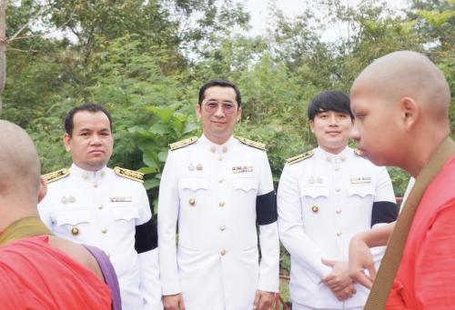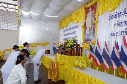 หลังเสร็จสิ้นพิธีทำบุญตักบาตร ได้มีพิธีวางพานพุ่มดอกไม้ถวายราชสักการะเบื้องหน้าพระบรมฉายาลักษณ์พระบาทสมเด็จพระบรมชนกาธิเบศร มหาภูมิพลอดุลยเดชมหาราช บรมนาถบพิตร เนื่องในวันคล้ายวันพระบรมราชสมภพพระบาทสมเด็จพระบรมชนกาธิเบศร มหาภูมิพลอดุลยเดชมหาราช บรมนาถบพิตร วันชาติ และวันพ่อแห่งชาติ เพื่อน้อมรำลึกในพระมหากรุณาธิคุณอันหาที่สุดมิได้
