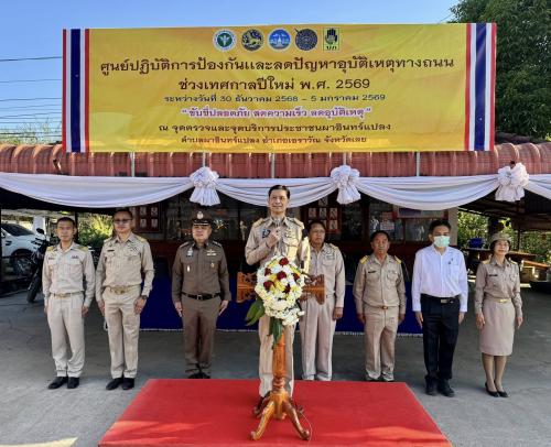 นายชานนท์ ปิ่นตระกูล พัฒนาการอำเภอเอราวัณ มอบหมายให้เจ้าหน้าที่สำนักงานพัฒนาชุมชนอำเภอ เข้าร่วมพิธีเปิดศูนย์ปฏิบัติการป้องกันและลดอุบัติเหตุทางถนนช่วงเทศกาลปีใหม่ พ.ศ. 2569 ณ บริเวณจุดตรวจและจุดบริการประชาชนผาอินทร์แปลง ตำบลผาอินทร์แปลง อำเภอเอราวัณ จังหวัดเลย โดยมีวัตถุประสงค์เพื่อให้บริการประชาชนในช่วงเทศกาล เพื่อให้การเดินทาง และการใช้รถใช้ถนนเป็นไปด้วยความปลอดภัย