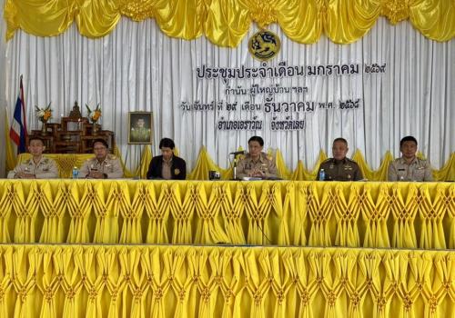 นายกฤษณะ รักษ์มณี นายอำเภอเอราวัณ เป็นประธานการประชุมกำนัน ผู้ใหญ่บ้าน อำเภอเอราวัณ ประจำเดือนมกราคม 2569 พร้อมด้วยหัวหน้าส่วนราชการระดับอำเภอ เพื่อแจ้งข้อราชการที่สำคัญ